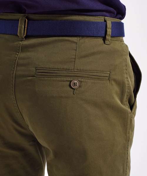 Men’s chino shorts with two swing pockets and two back jet pockets. Zip fly and button fastening to the front. Soft-finish lightweight fabric. Belt loops. Style can be worn rolled up. Product contains no branded neck label. Removable Kimble or looped garment tags. Inner seam label holds important product information on one label with a second label containing brand information which can be cut-away. Please note old stock may contain a fixed branded label.