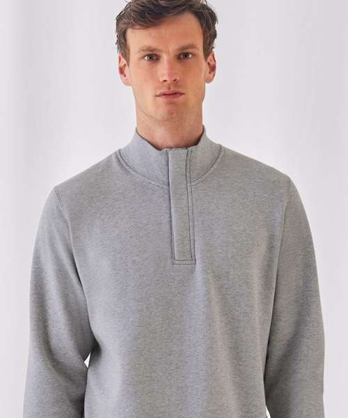 The cotton rich composition (80% cotton, 20% polyester) of the B&C ID.004 basic sweatshirt gives you the efficient blend of decoration result and wearer comfort. Featuring a 1/4 zip on its high 1x1 rib collar and a 2-side covered placket to avoid skin contact with zip.