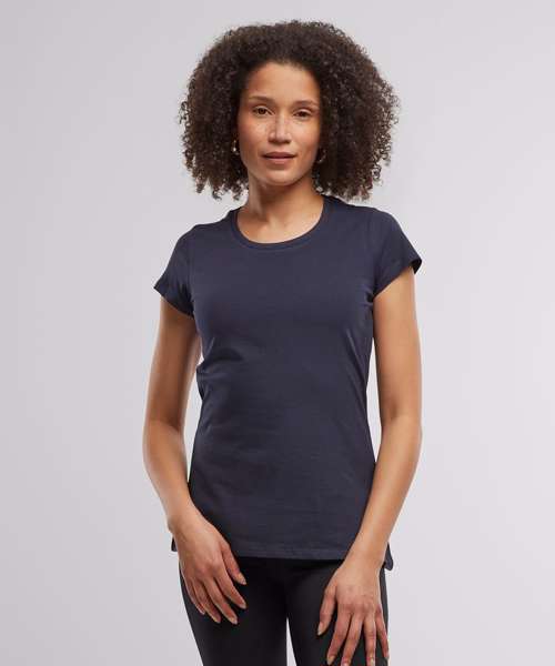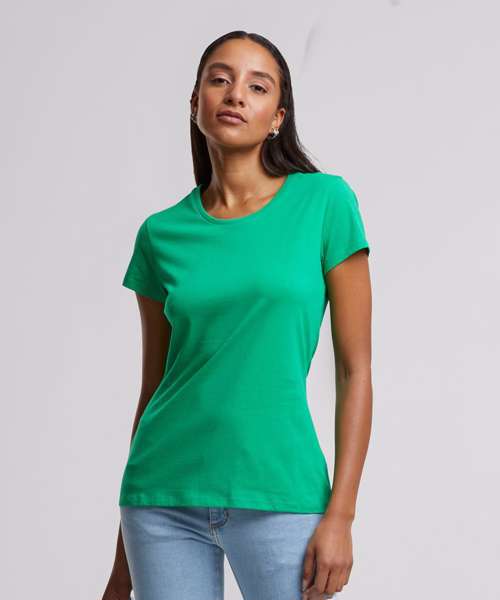 The perfect everyday women’s tee, this feminine top is made from pure cotton and offers a form-fitting shape. As an indispensable basic piece of clothing, it should be part of any wardrobe, featuring short sleeves and a rib crew neck. The entire area can be used for further finishing options such as embroidery, flock printing or silk-screening.