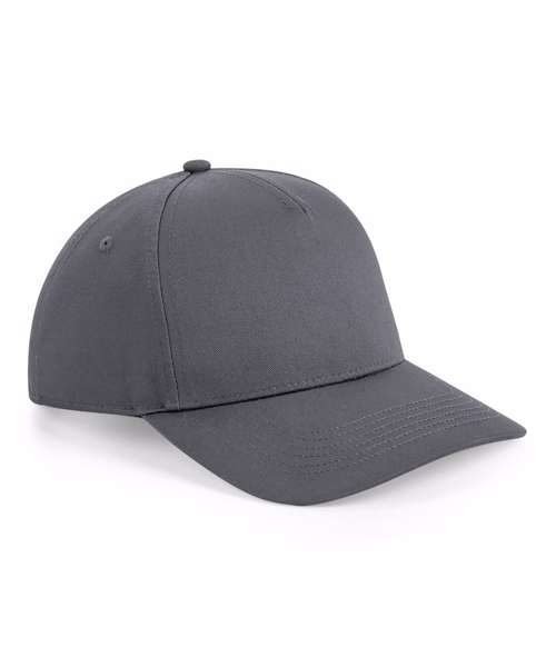 5-panel design. Structured front panels. Semi-curved peak. Stitched ventilation eyelets. Snapback size adjuster. TearAway label for ease of rebranding.