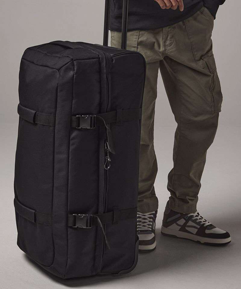 TearAway label for ease of rebranding. Convenient dual compartment design for easy packing. Lockable main compartment zip. External identification window. Removable Rip-Strip™ handle wraps for ease of decoration. Dual compression straps. High stability retractable twin-handle. Durable front grab handles. Padded top and side handles. Durable integrated skate wheels. Can be further customised with BG485 Escape handle wrap.
