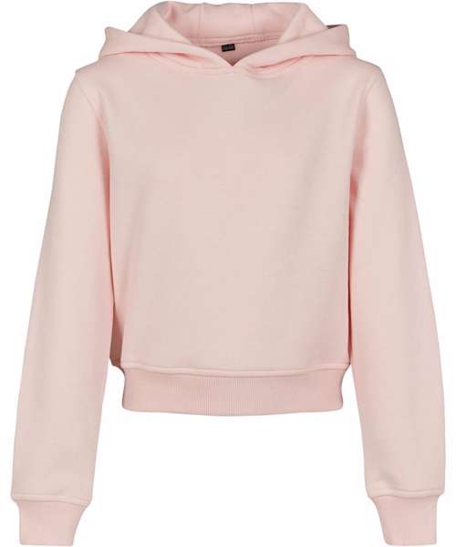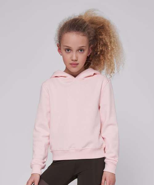 Ideal for cosy hour, the girls cropped sweat hoodie convinces with its balance of typical hoodie details and trendy cropped cut. A hood makes it a comfortable must-have. Wide ribbed cuffs on the sleeves and hem make the perfect look, which can be personalised with prints of your choice. This item is manufactured in a FAMA Certified factory. FAMA stands for Facility and Merchandise Authorisation and is a high standard production certificate.