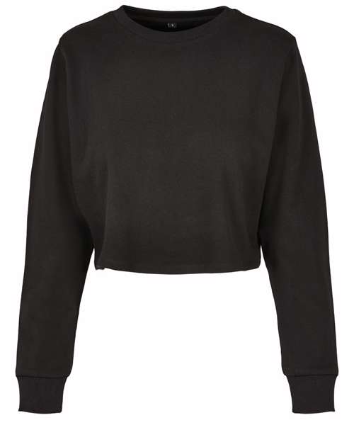 This casual crop top combines trendy urban street style with sportiness and comfort. Its wide cuffs, together with the comfy 100 percent cotton material offer best wearing properties. Those who like it even more individually can refine the crew shirt with embroidery or a screen or flex print.