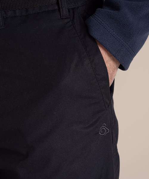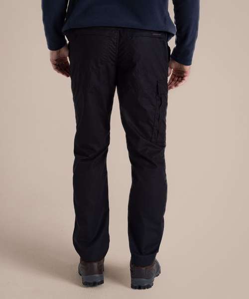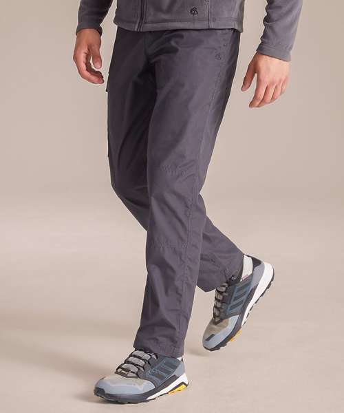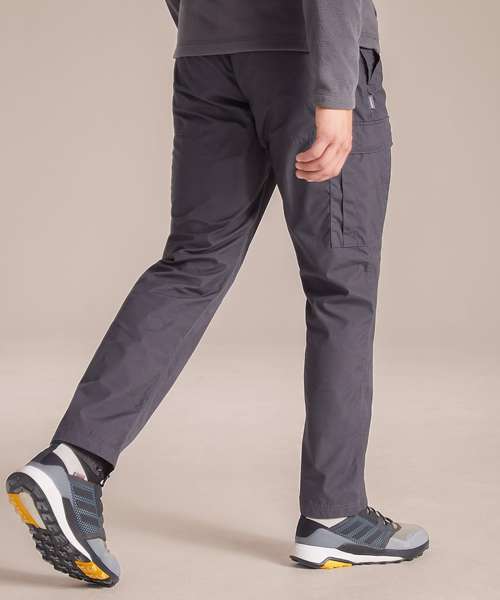 Durable trousers with a water-resistant finish, featuring 9 pockets. Peached recycled polyester and recycled cotton with EcoShield DWR finish. 100% recycled zip tapes. UPF 40+ sun protection and Nosi Defence technology.