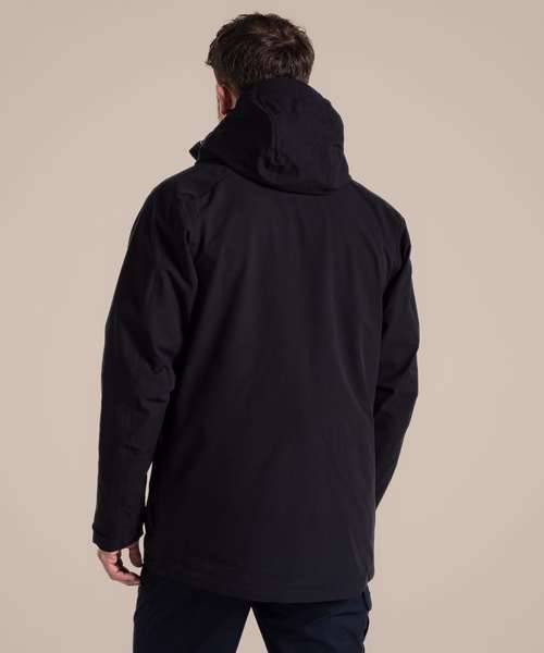 Cool wash with Craghoppers AquaDry waterproof cleaner or pure soap. Wash with similar colours. Do not use bleach or water softeners. Do not use fabric conditioners. Rinse well. Remove immediately after wash. Can be tumble dried on a low setting. Cool iron, if needed, on the outer side of the fabric. Do not dry clean. Do no wring. Close all fasteners before washing and drying. Use Craghoppers AquaDry reproofer if needed. Apply heat as per care instructions if DWR needs regenerating. Fabric may be damaged by solvents, alcohols and insecticides.
