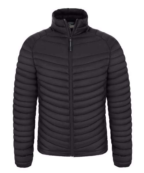Water-resistant padded jacket with a full-length zip and 4 pockets, one of which doubles as a stow pocket. Recycled polyester mini ripstop with EcoShield DWR finish outer and lining. ThermoPro recycled polyester fill and recycled zip tapes. 4 pockets: 2 welted zipped lower, 1 concealed zipped inner and1 passport RFID.