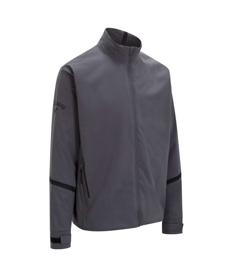 10,000 MMU fully-seamed jacket. AquaGuard® water-resistant zips. Adjustable hem. Adjustable hook and loop fastening cuffs. Zip exterior pockets. SwingTech back. Callaway tour logo heatseal on right sleeve and Chevron on back of neck. . BSCI certified. Reach certified.