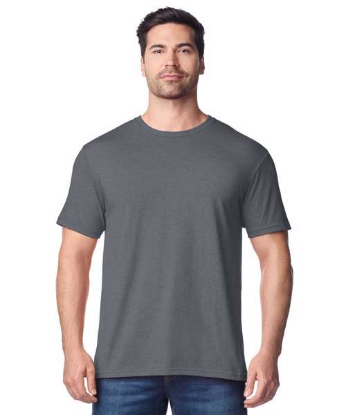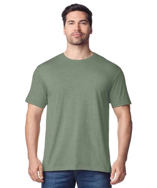 Take the edge off your world’s hectic pace with the tee that always feels like a stress-free weekend. This ringspun pre-shrunk cotton Jersey is knit exclusively of deluxe 30s Softstyle™ yarns, resulting in a lightweight, highly uniform fabric that makes an excellent backdrop for embellishment in a wide array of colours. With Euro fit shoulders and arms for a fitted look, it’s a modern-day essential.