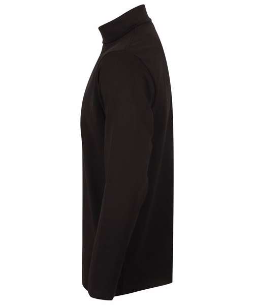 Cotton rich with double thickness rib roll neck. Reinforced shoulders and neck. Twin-needle stitching. Hemmed cuffs.