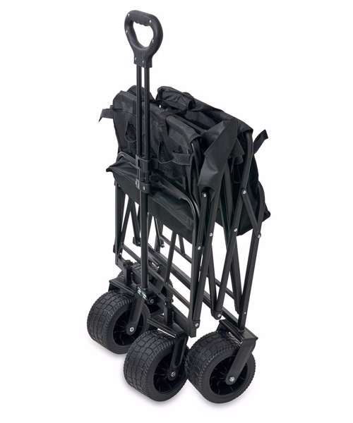 This foldable cart offers so much versatility! A convenient cart for festivals, holidays, day trips, business, and much more! Seamlessly folds and packs away, making it easy to store and great for travelling when you have limited space. A durable build with 8" wide wheels means you can tackle festival fields and day trips out with confidence.