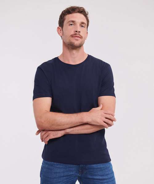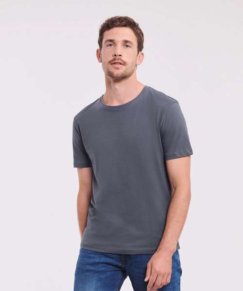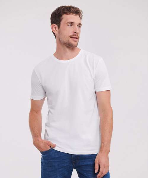 Contemporary shaped fit. Custom developed shoulder to shoulder tape offering greater stability and elegant look. Small size label in the left side of the neck and removable adhesive label. Narrow collar band with lycra. Side-seams improve fit. Comfortable, cool and light texture. Smooth surface for best print results. Contains organic cotton.