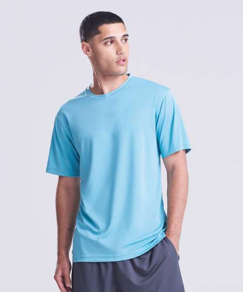 AWDis' own Neoteric™ textured fabric with inherent wickability and quick drying properties. Self fabric taped back neck. Set in sleeve design. Twin needle stitching detail. Self-fabric crew neck. Simple tear off label maks it perfect for rebranding. UPF 30+ UV protection.