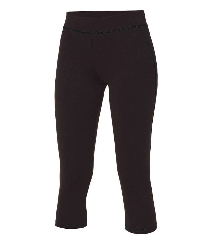 Contrast flatlock stitching on contrast colours. AWDis’ own CoolFit blended fabric containing elastane that provides stretch for comfort and a great fit, Elasticated smooth waistband. Hidden inner front key pocket. Flat seams for less irritation. Slimline ¾ length. Simple tear off label makes it perfect for rebranding, UPF 30+ UV protection.