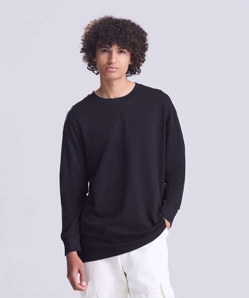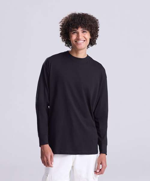 Oversized fit. Side seams. Long sleeves with cuffs. Ribbed crew neck style with taped neck. Set-in sleeve. Size label only, for easy rebranding – colour-coded black for unisex. Combed ringspun cotton for ultra-comfort. Excellent surface for print or embroidery. Twin-needle stitching detail.