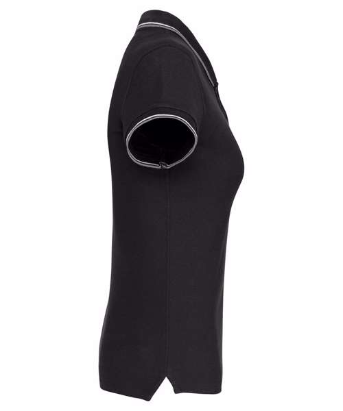 100% cotton piqué. 5 button placket. Contrast taped neck and side vents. Flat knit rib with contrast tipping at neck and cuffs. Twin needle finishing. Oeko-Tex certified.