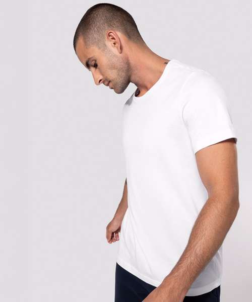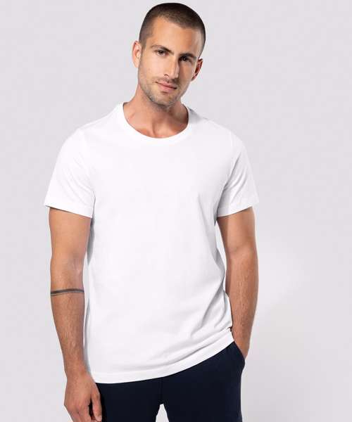 100% Cotton enzyme washed for extra soft hand feel (Oxford grey : 90% Cotton / 10% Viscose). Slim fit. Self fabric neckline. Heather Grey contrast taped neck for all colours, except for white body where tape neck is White and Oxford Grey body where tape neck is Dark Grey. Twin needle finishing. BSCI certified. Oeko-Tex certified.