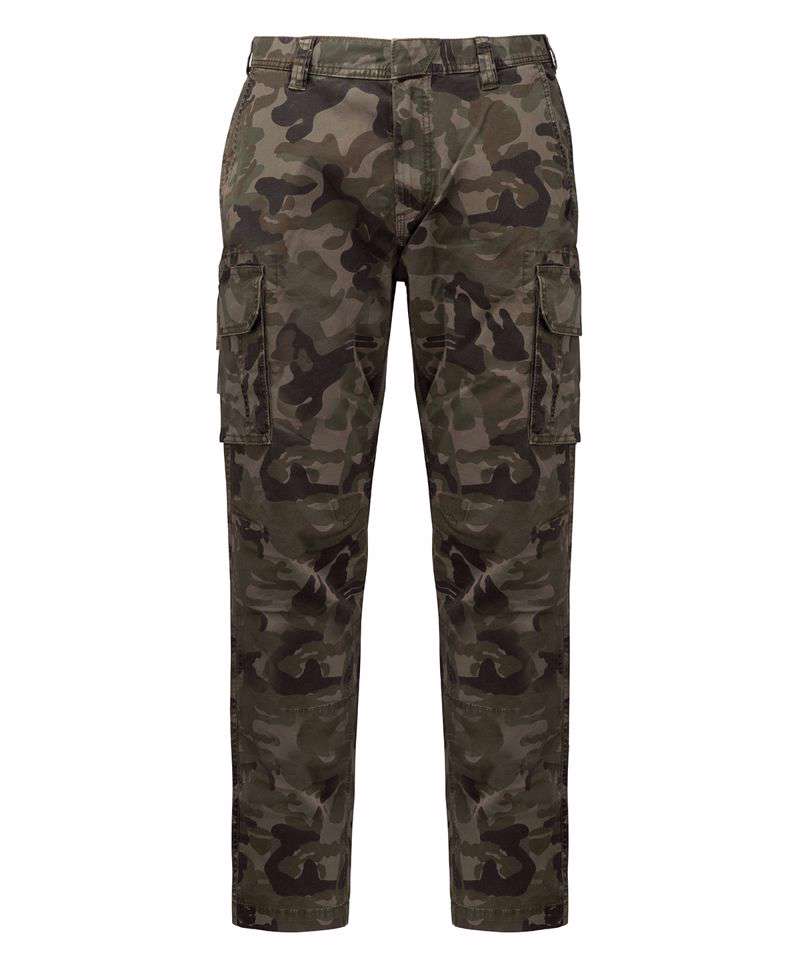 98% cotton / 2% elastane. Twill fabric with soft peached finish. Zip fastening and concealed metal button. 2 front pockets. 2 gusseted side pockets with flap. 2 back pockets with flap. This product has been specially treated and appears intentionally aged. This manufacturing process results in colour variations between products and makes each piece unique.