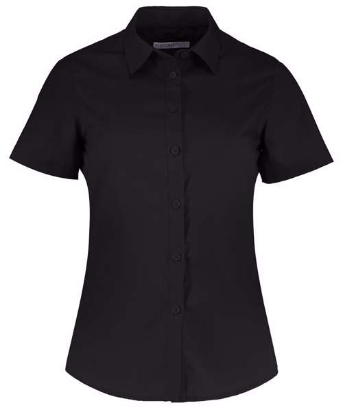 Women's short sleeve tailored poplin shirt. Versatile contemporary styled business shirt with soft collar.