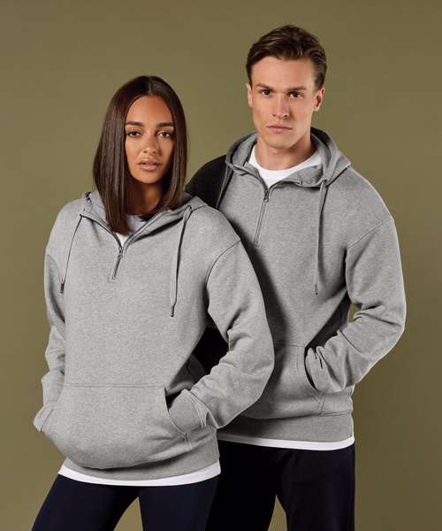 Versatile and retail-ready, this midweight hoodie is made from 280gsm 80% cotton/20% polyester brushed back Jersey with a 100% cotton face. It features a YKK metal 1/4 zip and industrial metal hardware, and sits perfectly in both fashion and workwear environments. Key benefits include: a generous Jersey-lined hood; twin-needle stitched armholes; a classic kangaroo pocket applied with double-stitched seams for extra durability; full-needle cuffs and welt for shape retention, with twin-needle top stitching.