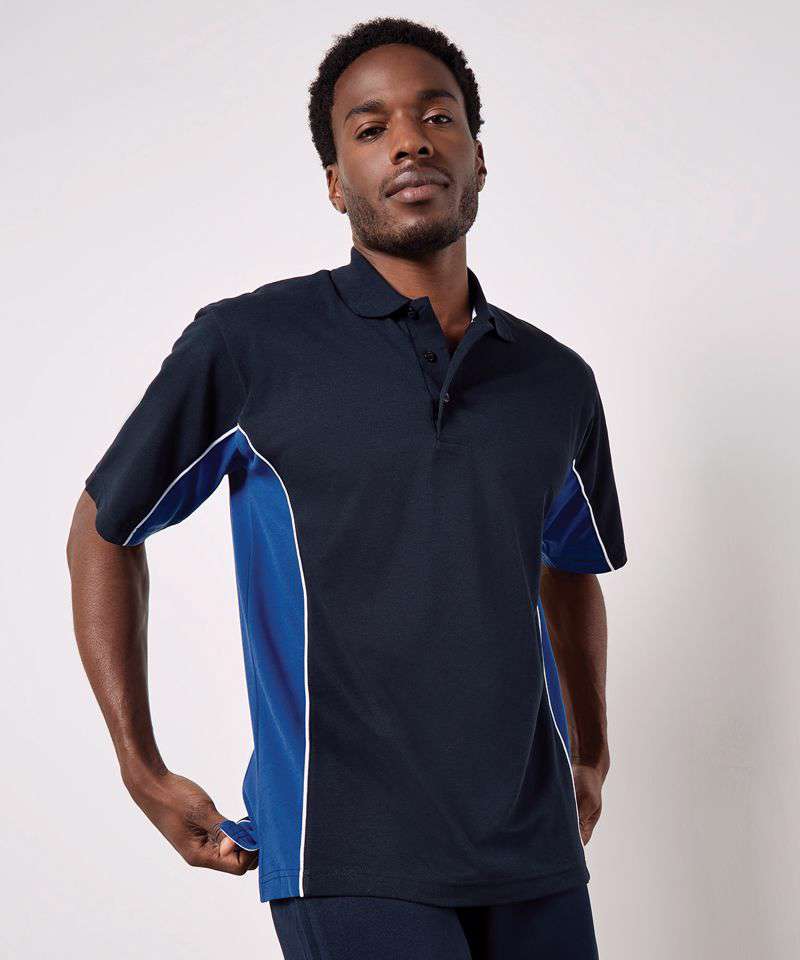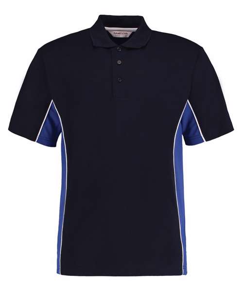 1X1 rib flat knit collar. Twin-needle hem and cuffs. Side and underarm contrast panels with white piping. Half moon yoke. Contrast taped back neck and side vents. Spare button. 3-button interlined slanted top placket. Reinforced shoulder seams. Gamegear® woven back neck label.