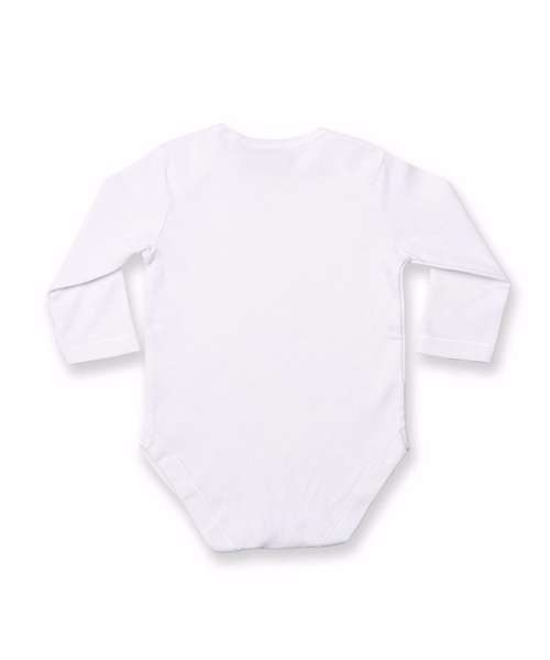 The long-sleeved baby bodysuit has been designed using the finest of fabrics and left blank for print and embroidery opportunities. The bodysuit conveniently features a YKK bottom popper fastening and is available in cheerful colours.