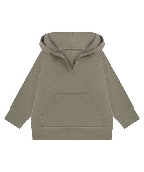 Kids’ hoodie made in recycled fabric with self-fabric knitted rib at hem and cuffs. Open placket at centre front. Tag-free.