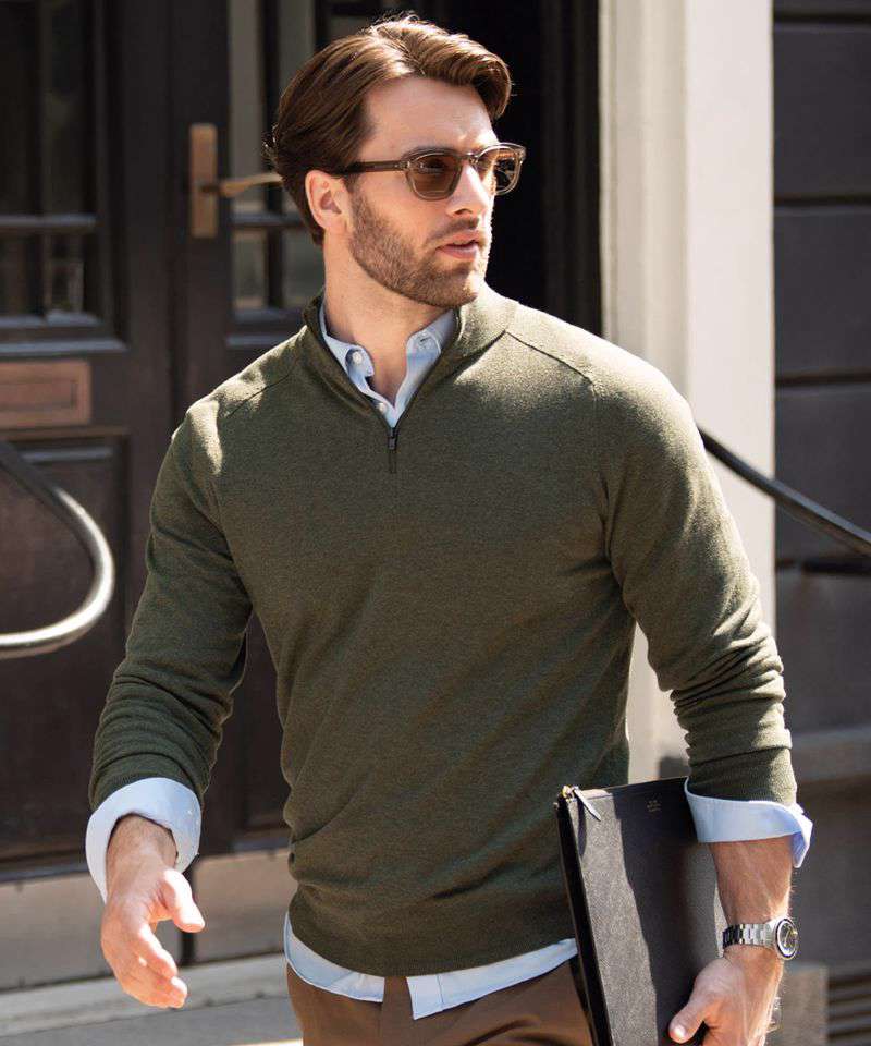 The elegant Brighton ¼-zip knit will keep you well-dressed, whatever the occasion, and is perfect for both casual and more formal looks. Wear it alone or over a shirt as a timeless trans-seasonal layer. This knit features a modern fit, a ¼-zip funnel neck and is made in fine-gauge premium organic cotton and nylon yarns for a more refined style, providing soft comfort and excellent shape retention.