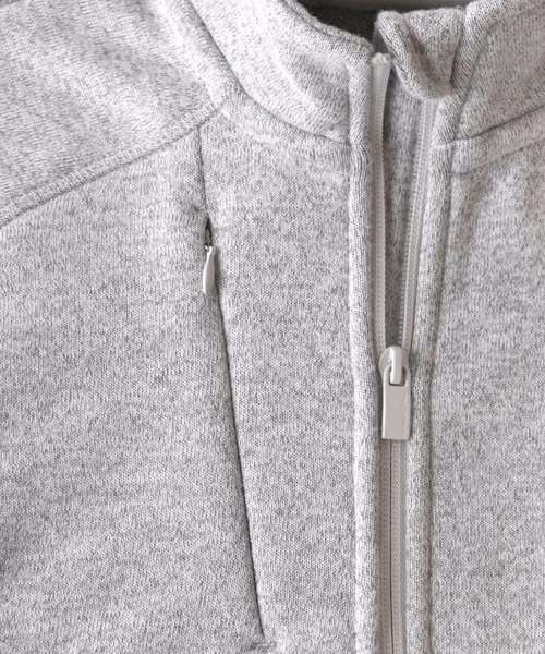 Rubber zip puller at side pockets. Chest pocket with hidden zipper. Bonded fleece in the inside.