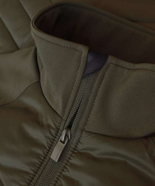 Outer fabric: 100% Recycled nylon - 95% Recycled softshell, 5% Elastane. Padding: 100% Polyester; Sorona® Aura