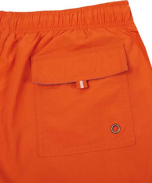 Light and quick-drying fabric. Trendy style. 2 side pockets and 1 back pocket with eyelet, flap and tear release fastening. Decorative inner elasticated waist with drawstring. BSCI certified. SEDEX certified.