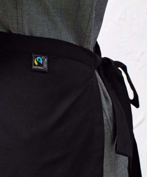 This half apron is made from 100% certified Fairtrade cotton. The apron is labelled with the official Fairtrade logo.