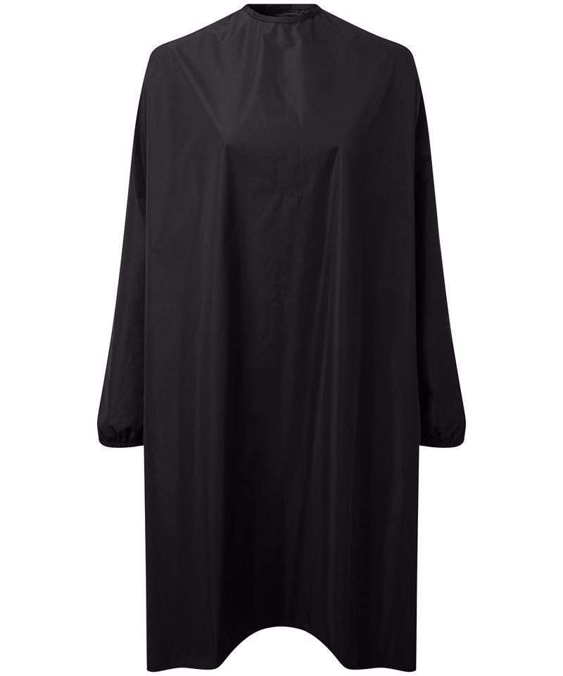 Waterproof and bleach resistant for use in salons and barbers. Elasticated cuffs. Adjustable tear release fastening. Measures 108cm long.