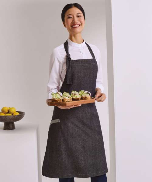 Made entirely from regenerated denim, and woven on hand looms in a low-powered carbon factory, this cotton apron has a great more sustainable story to tell! The fleck effect is testimony to the recycled denim fabrics that this apron was created from. It features two slanted side pockets with contrast trim and a knotted neckband that can be adjusted for height. Super-soft to touch, with a linen feel.