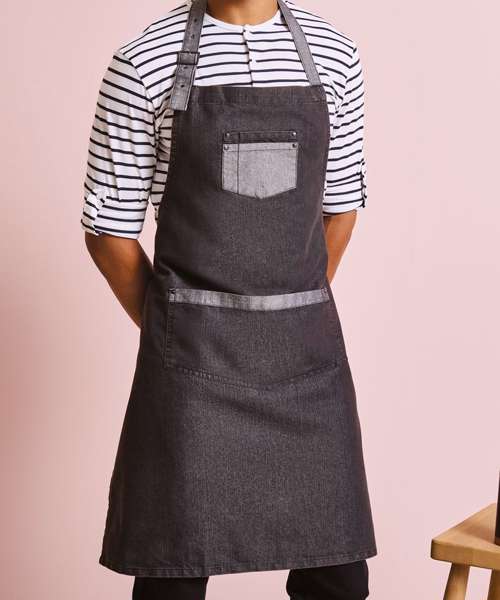 PR127: Domain contrast denim bib apron