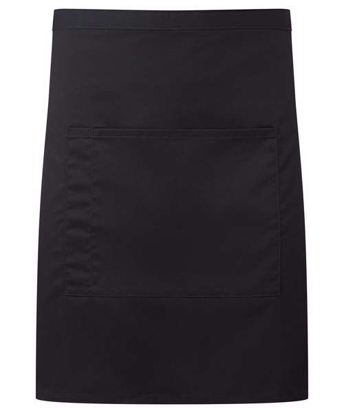 A popular apron for waitressing and bar staff. Self-fabric ties at the waist are long enough to be doubled round and knotted at the front for styling. Featuring a practical centre pocket with built-in pen pocket. Available in six of the best-selling colours. Made with certified recycled polyester.