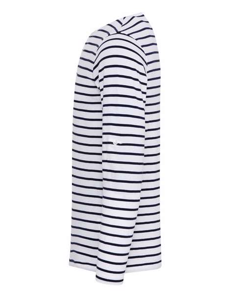 Long sleeve tee that has roll sleeve capabilities with button tab on the inside of the sleeve to secure in place. Round neck style with three a button placket. Twin-needle stitching to the hem and cuff.