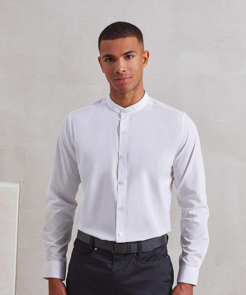 PR258: Banded collar grandad long sleeve shirt