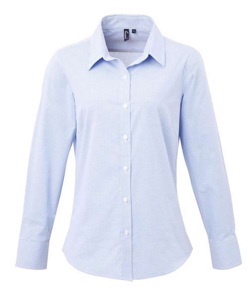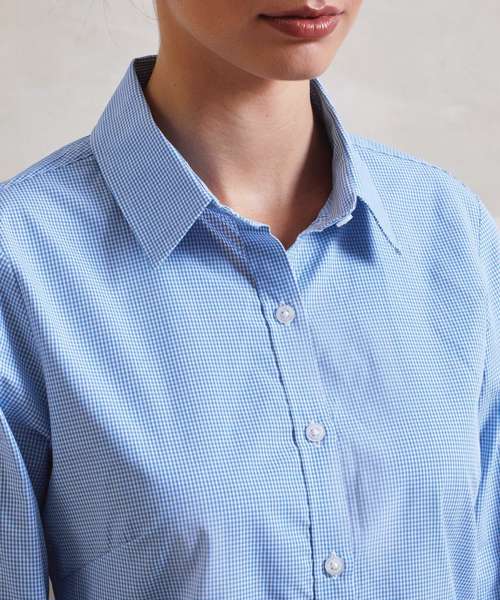PR320: Women's Microcheck (Gingham) long sleeve cotton shirt
