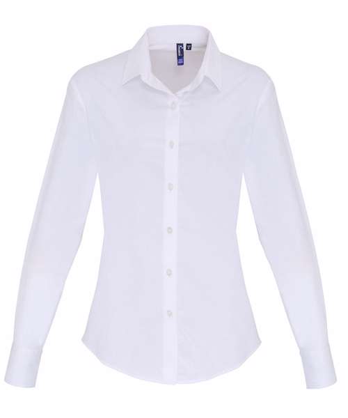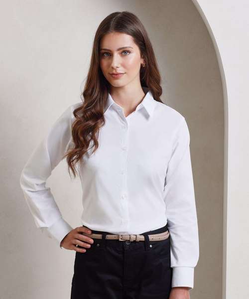 Premier's long sleeve Signature Oxford blouse comes in a cotton rich Oxford weave fabric for a smart and professional appearance. This blouse offers a more fitted styling for the wearer with bust and back darts, a rounded bottom hem and soft collar detail on the neckline making for a lovely everyday work blouse.