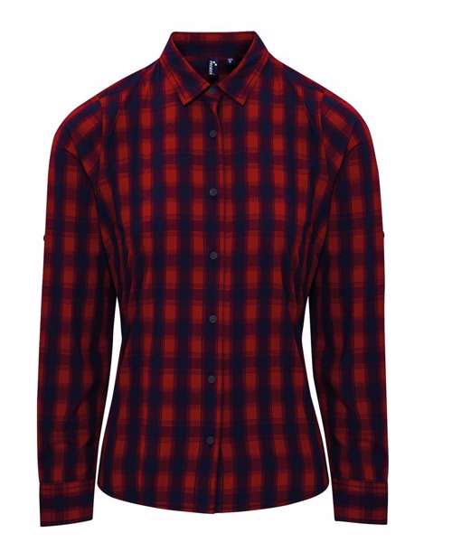 PR350: Women's Mulligan check cotton long sleeve shirt