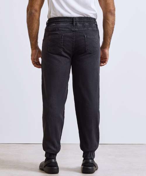 Cuffed ankle detail. Elasticated waist and drawcord. Stitched faux fly. Two swing pockets. Two patch pocket the rear.