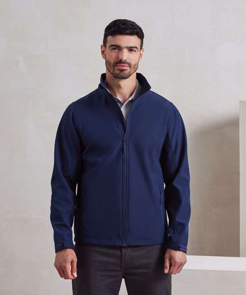 A men’s two-layer softshell jacket carrying Premier’s Windchecker®️ trademark for wind and water resistance through the fabric. Made with 100% certified recycled polyester with a bonded fleece inner layer, this zip-through softshell jacket features hook and loop strips to the cuffs for adjustment around the wrist. There are two handy zipped side pockets and an elasticated drawcord hem for fit. A great versatile outer layer for casual and corporate dressing for men.
