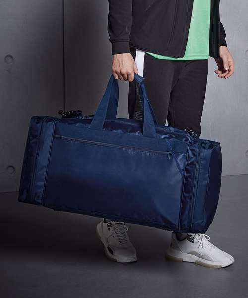 Detachable adjustable shoulder strap with pad. Wet pocket. Racquet pocket. Zippered end pockets. Internal baseboard, Protective base feet. Padded hand grip.