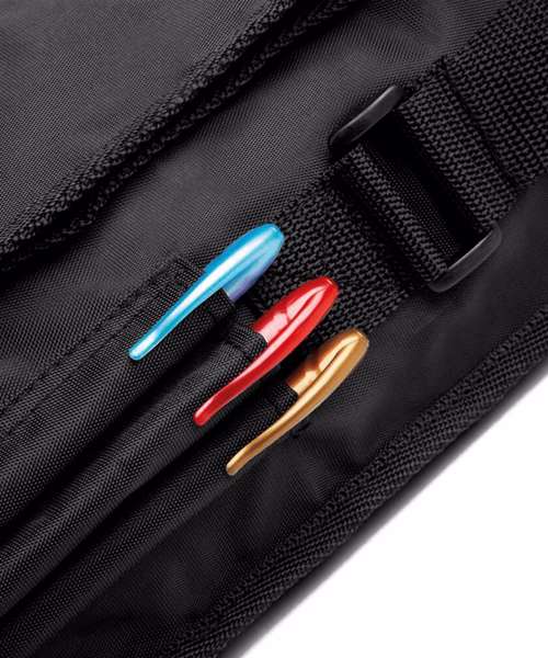 - Adjustable shoulder strapSide pen holdersRip-Strip™ closure