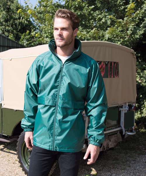 Waterproof 2000mm. Windproof. Waterproof taped seams. Full front zip. Zipped side pockets with cargo retention welts. Fold-away waterproof hood. Reflective tape across the lower back panel. Elasticated cuffs. Microfleece collar facing. Lightweight year-round use. Decorating methods: Embroidery, direct print, transfer print. Decorator's access point: lower back hem.