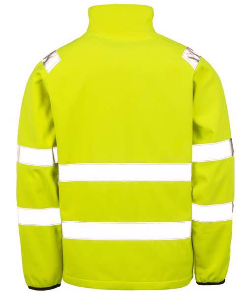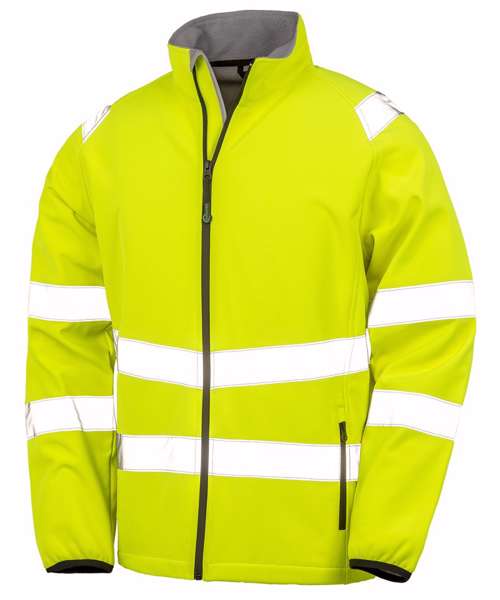 An ultra-comfortable, highly visible, recycled, printable safety softshell with sewn-on arm, shoulder and body bands. UKCA, EN ISO 20471: 2013+A1:2016 Class 2, RIS-3279-TOM Issue 2: Class 2 (orange).