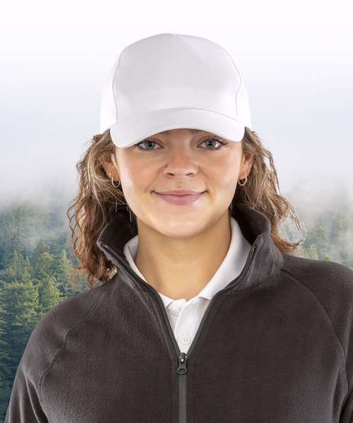 A low-profile adult printer’s baseball cap design using a recycled equivalent fabric to conventional yarns. Ideal for best decoration and CORE value budgets.