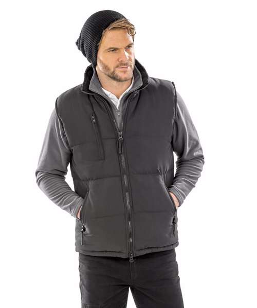 Water repellent. Windproof. Horizontal quilted outer. Concealed hood in collar. Full front heavy duty zip fastening. 2 front pockets and 1 chest pocket. Adjustable shockcord hood, collar, armholes and hem. Contains recycled material. Decoration Guidelines:Decorating methods: Embroidery, Direct print, Transfer print & Screen print transfer. Decorators access point: Concealed zips in outer shoulder panel & Inner side seam.