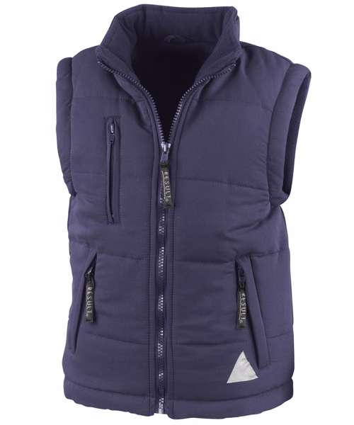 Water repellent. Windproof. Horizontal quilted outer. Concealed hood in collar with tear release fastening. Full front zip fastening. 2 angled front pockets and 1 chest pocket. Snug-fit elasticated arm holes. Reflective hang tag and triangle incorporating 3M™ Scotchlite™ reflective materials. Contains recycled material.Decoration Guidelines:Decorating methods: Embroidery, Direct print, Transfer print & Screen print transfer. Decorators access point: Concealed zips in outer shoulder panel & Inner side seam.