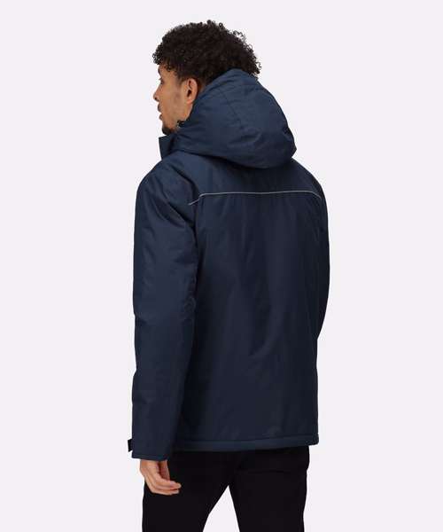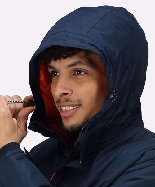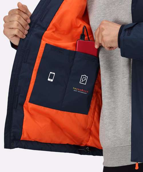 Waterproof Hydrafort 5000 polyester fabric with taped seams and a DWR (Durable water-repellent) finish for all-weather protection. Rechargeable copper heating zone to regulate your temperature. Power Bank Battery Operated* Thermo-guard 140gsm body insulation. Grown on insulated hood, reflective details front and back and storm cuffs for added weather protection. Inner mobile phone pocket and battery pocket. Charge your phone on the go. 1 Zipped Chest pocket and 2 zipped lower pockets. Concealed zip in lining for embroidery access and shock cord adjusters at face and hem. Battery pack is not included, please see RG004